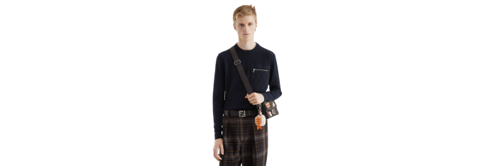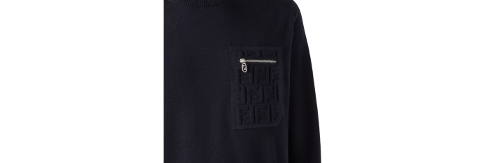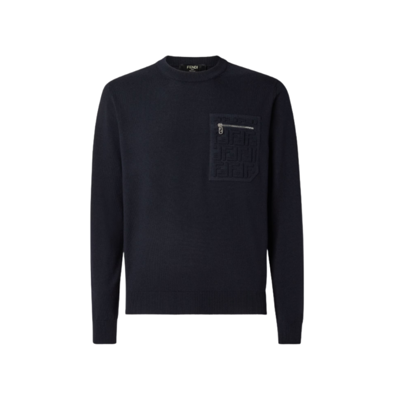 FENDIPull col rond classique laine bleu marine poche zippée FF relief