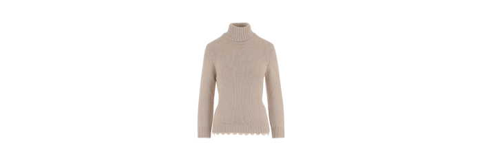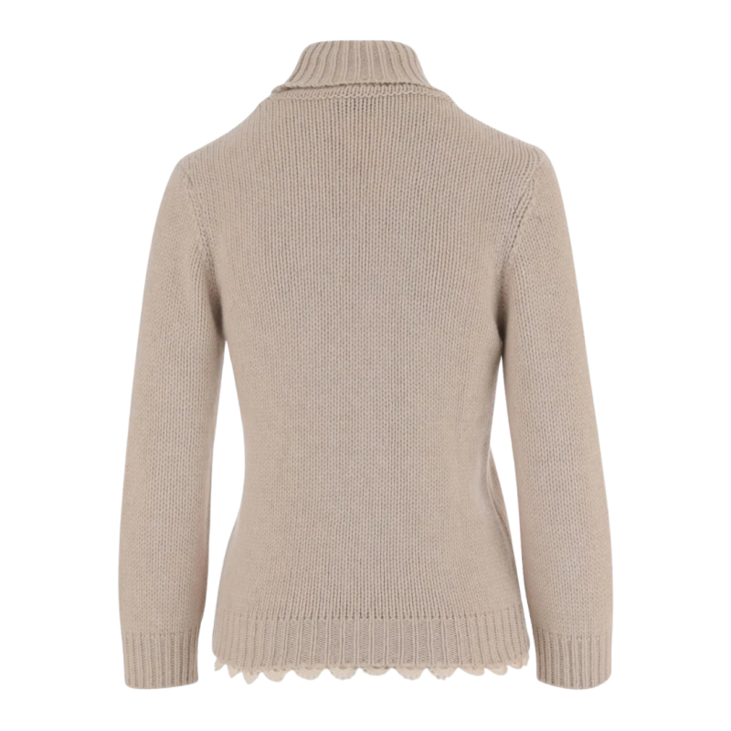 Pull col roulé cachemire beige bas crochet dentelle