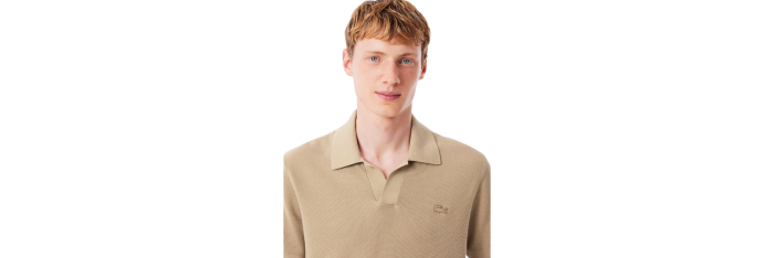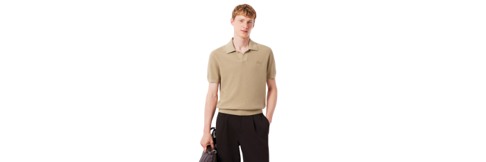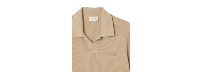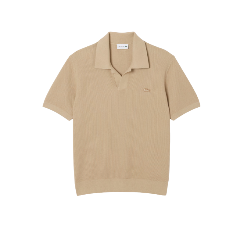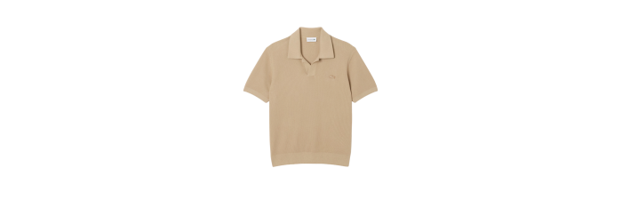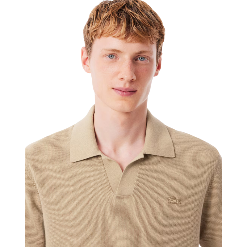 LACOSTEPull manche courte col polo ouvert coton laine beige