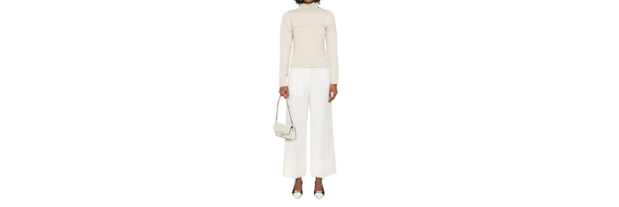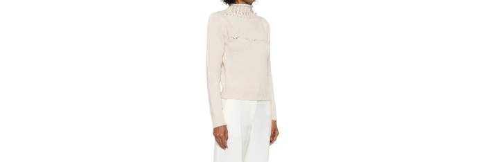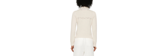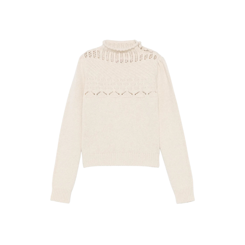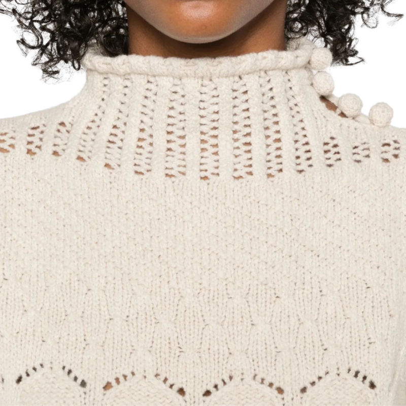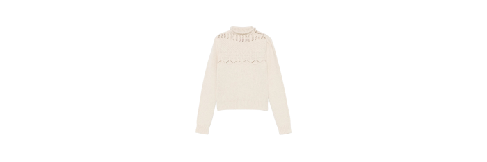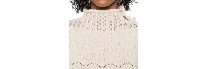 VALENTINOPull maille ajourée laine cachemire écru col roulotté