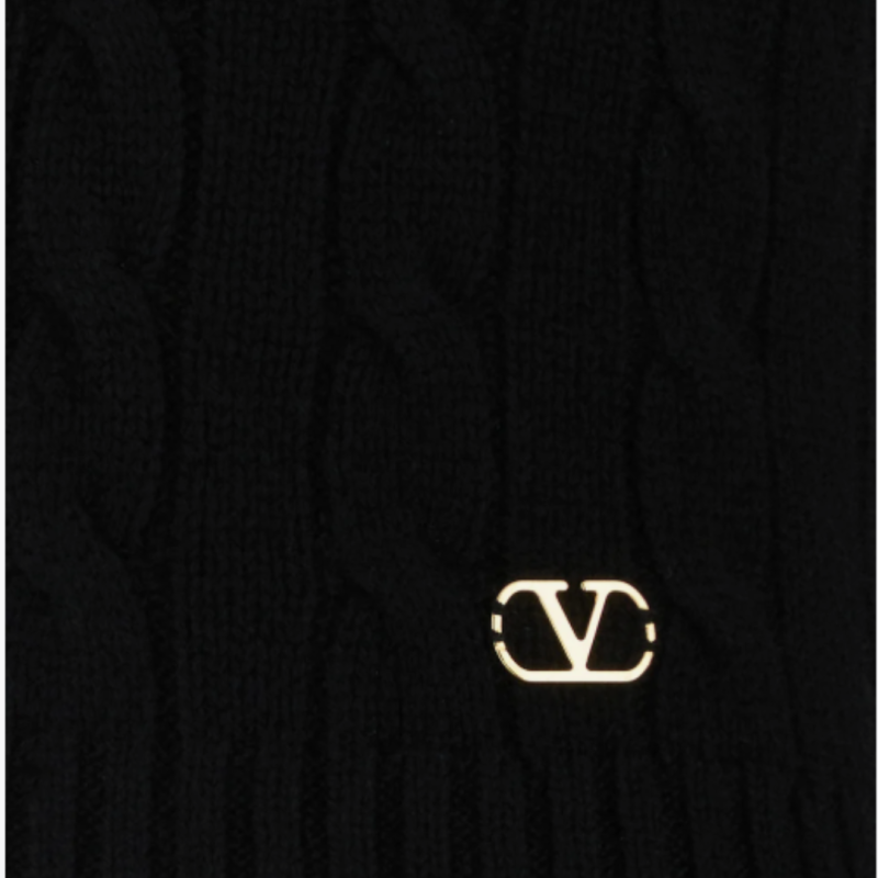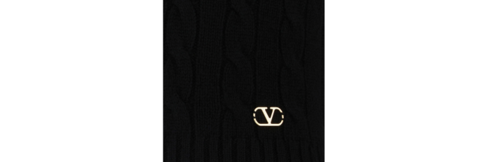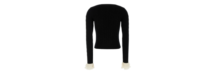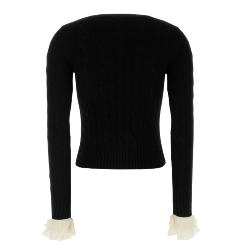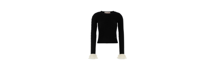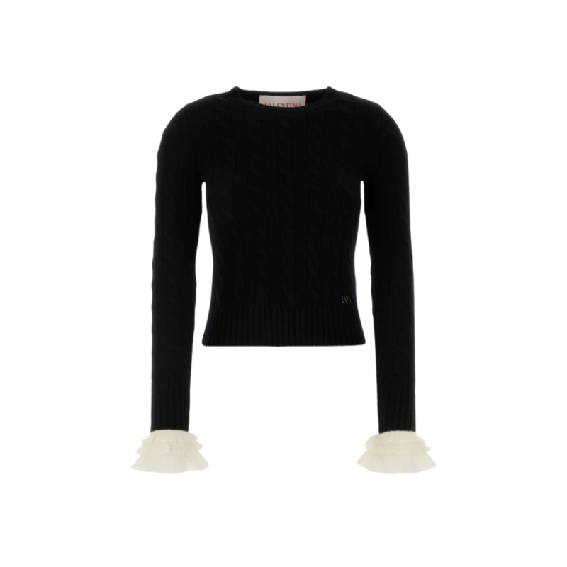 VALENTINOPull manche longue cachemire torsade noir volant mohair manche