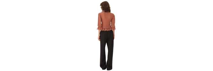 Extérieur du pull à volants : 80 % viscose, 20 % polyester métallisé