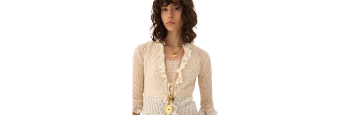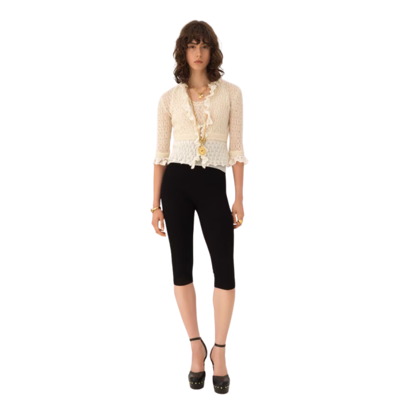 CHLOEPull court maille ajourée laine alpaga mohair soie écru volants