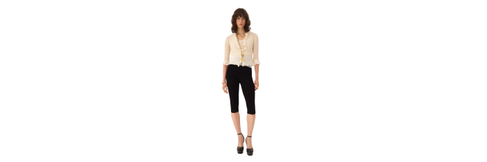 Pull court maille ajourée laine alpaga mohair soie écru volants