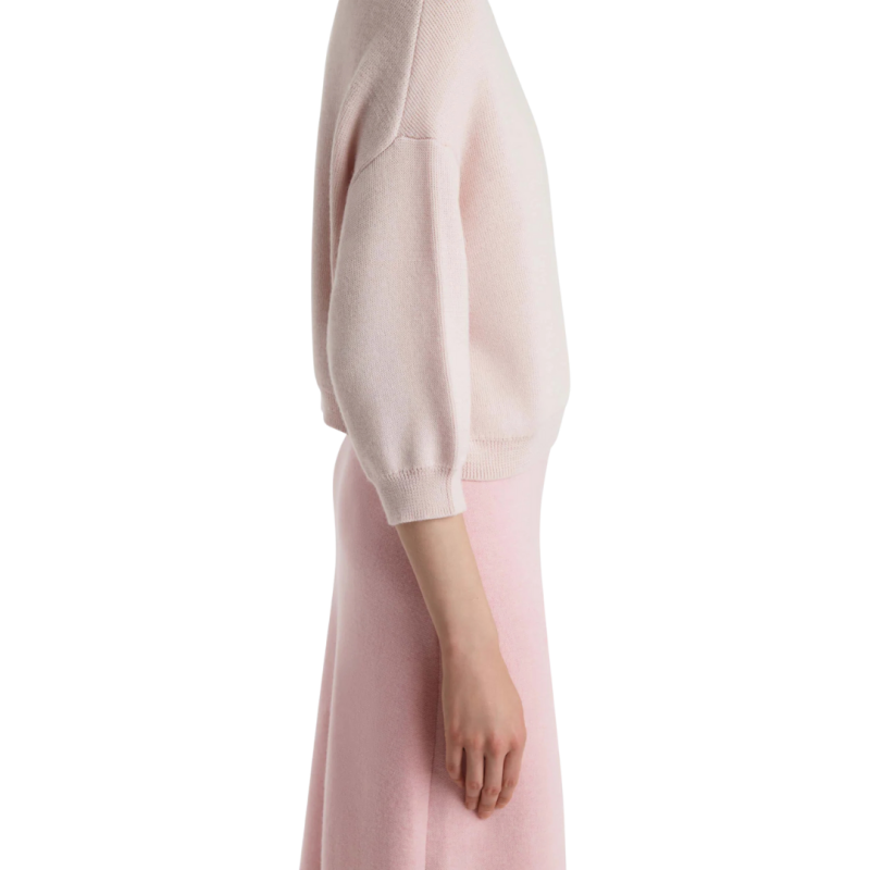 KHAITEPull col rond manche 3/4 Sabina cachemire laine mohair rose pale