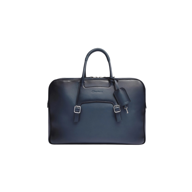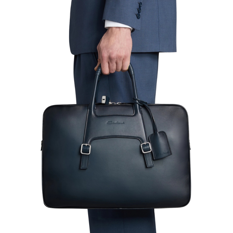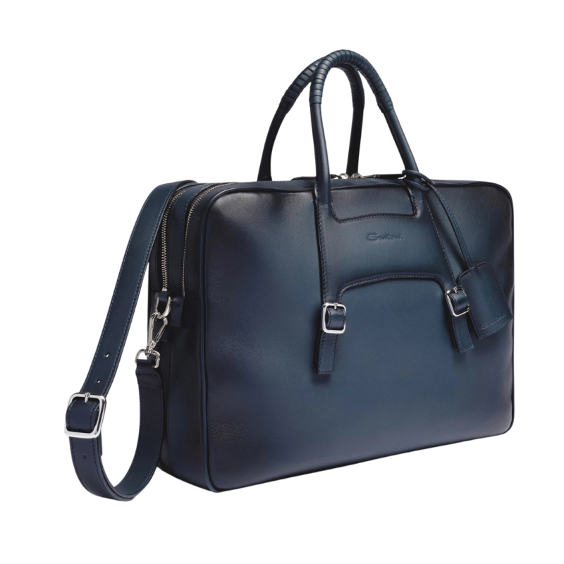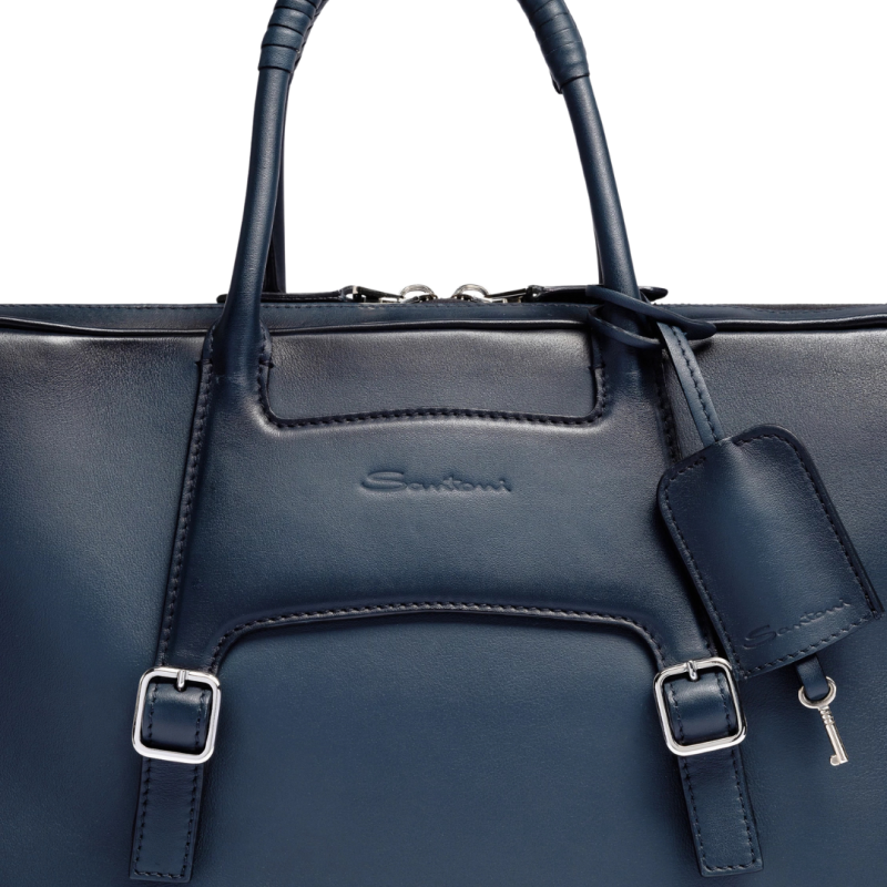 SANTONISac d'ordinateur cartable cuir bleu marine