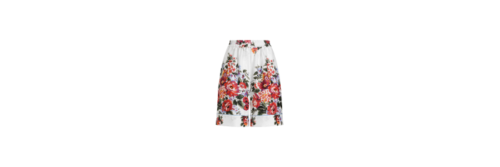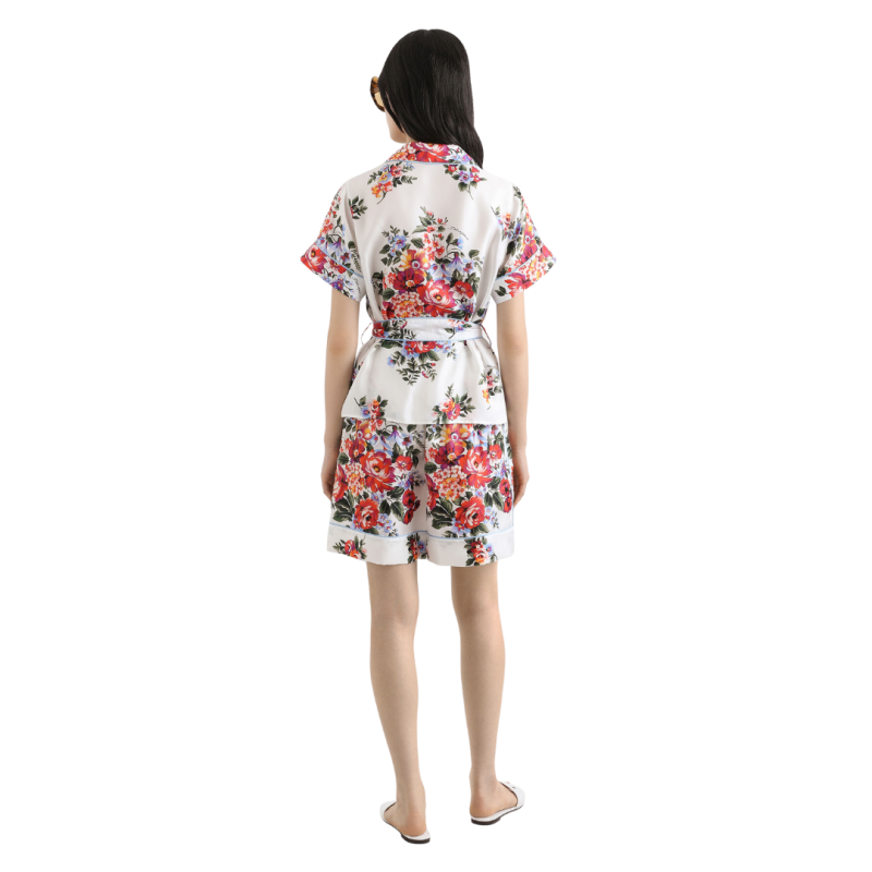 DOLCE & GABBANABermuda sergé soie blanc bouquet fleurs rouge ganse bleu ciel