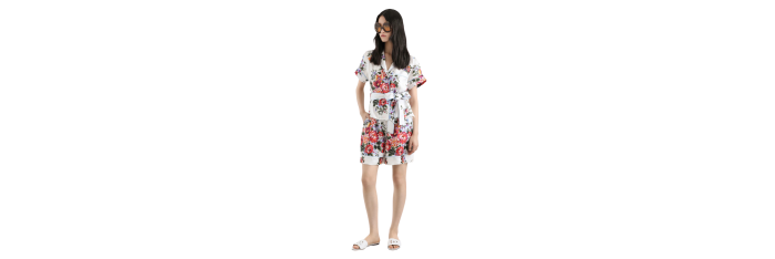 bermudas de toilette en sergé imprimé bouquet de fleurs