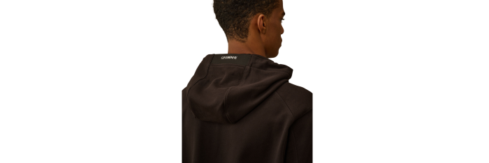 Sweat à capuche confectionné en polaire à relief diagonal, un coton brossé à tissage diagonal de poids moyen. Le tissu doux assure le confort et la facilité de mouvement. Ce sweat-shirt est doté d'une capuche réglable, d'une poche kangourou et de la lentille emblématique de C.P. Company. Finition avec poignets et ourlets côtelés. Coupe régulière.