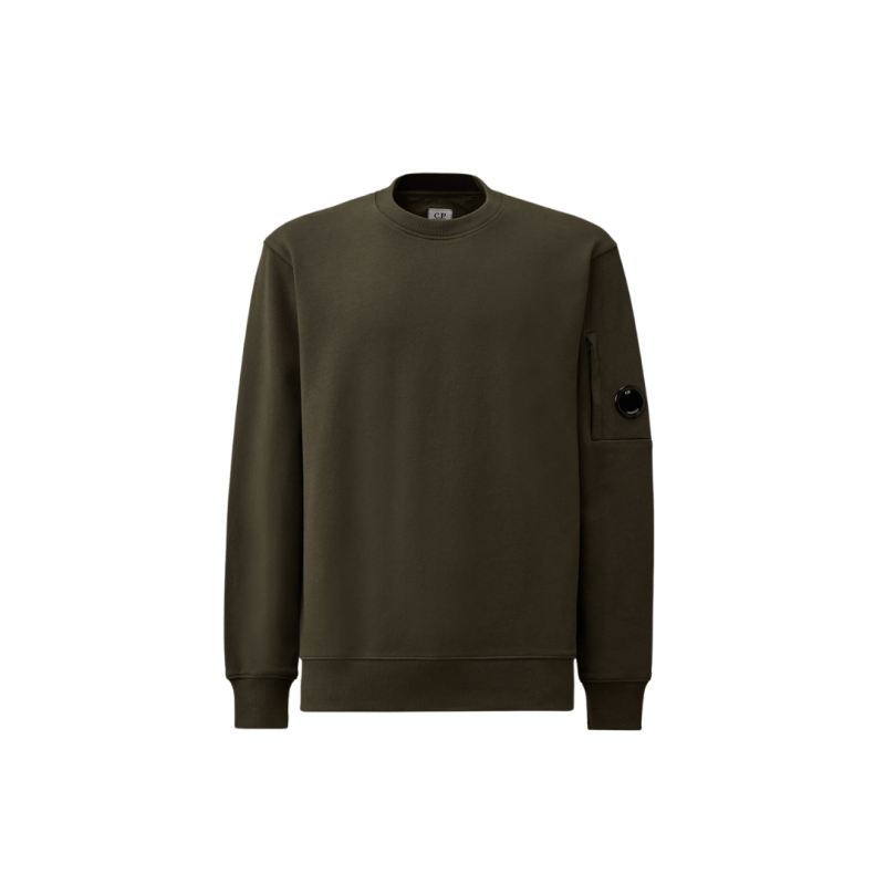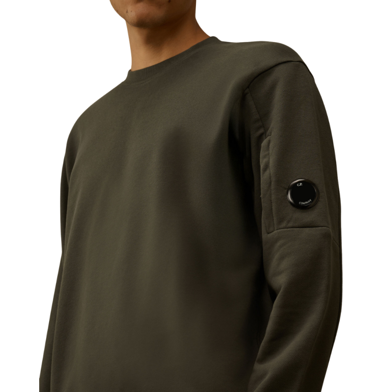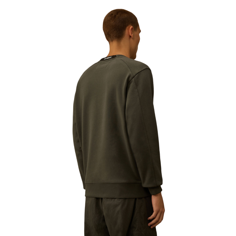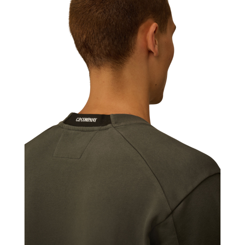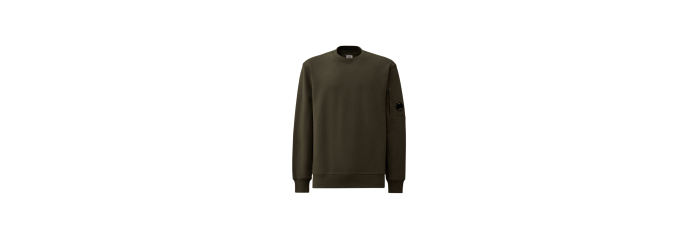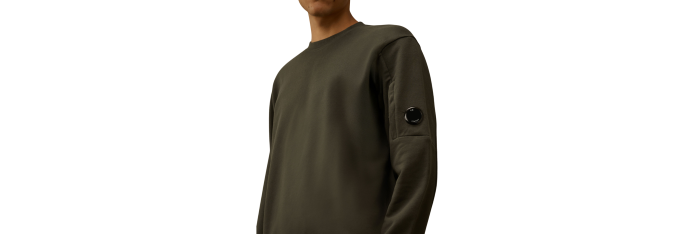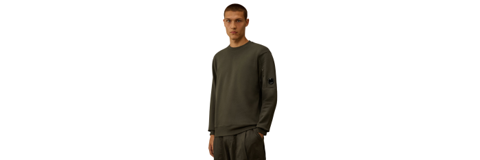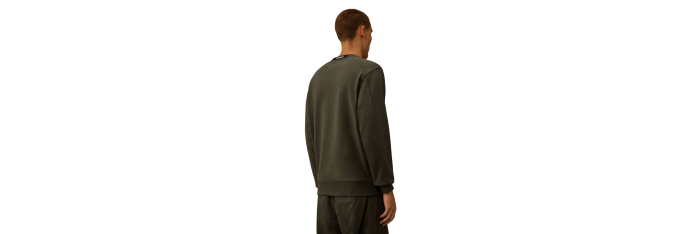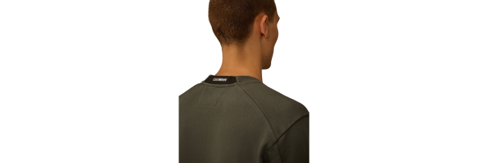 Sweat rasé du cou confectionné en polaire à relief diagonal, un coton brossé à tissage diagonal de poids moyen. Le tissu doux assure le confort et la facilité de mouvement. Le sweat-shirt est orné d'un logo brodé sur le col arrière, de la lentille emblématique de C.P. Company, et de poignets et d'un ourlet côtelés. Coupe régulière.