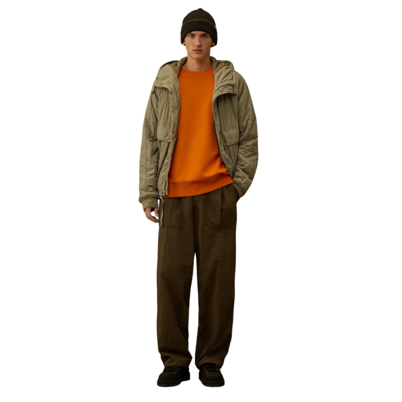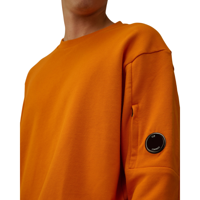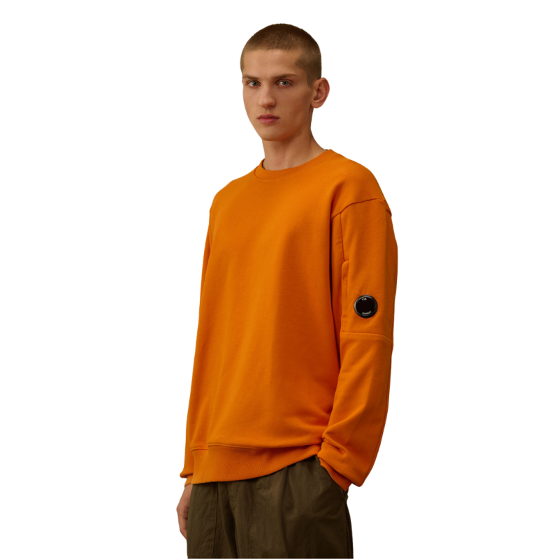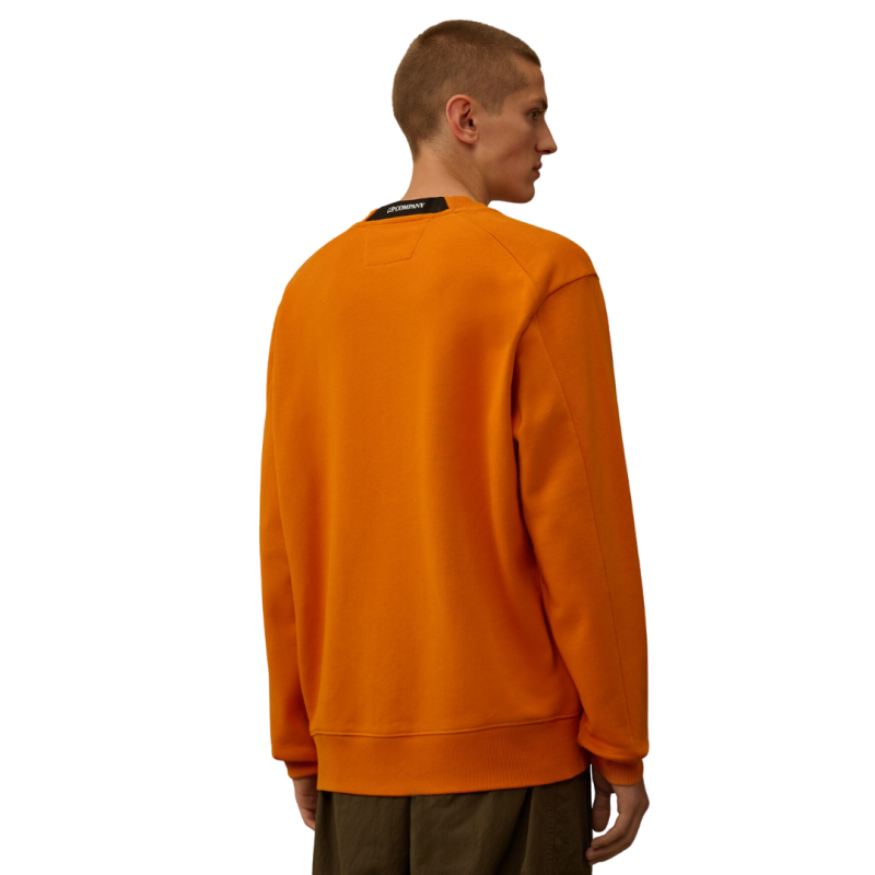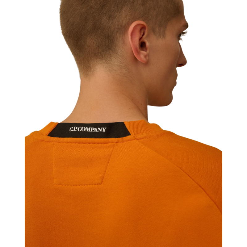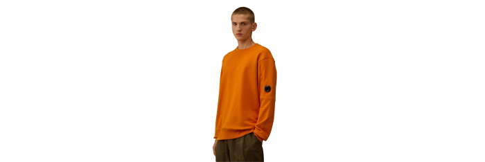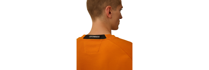 Sweat rasé du cou confectionné en polaire à relief diagonal, un coton brossé à tissage diagonal de poids moyen. Le tissu doux assure le confort et la facilité de mouvement. Le sweat-shirt est orné d'un logo brodé sur le col arrière, de la lentille emblématique de C.P. Company, et de poignets et d'un ourlet côtelés. Coupe régulière.
