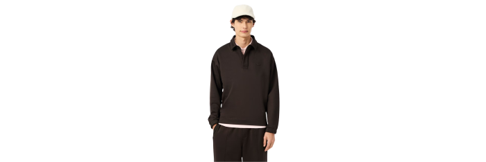 Ce sweat-shirt à col polo est une leçon de style sportif à la française, signature de Lacoste depuis 1933. La coupe ample, le tissu polaire non brossé et le col polo créent une sensation unique.