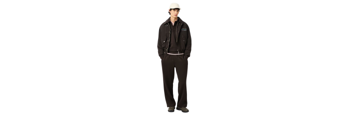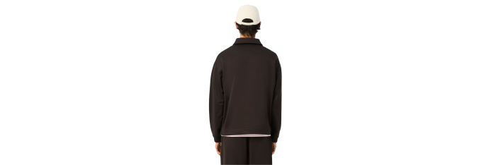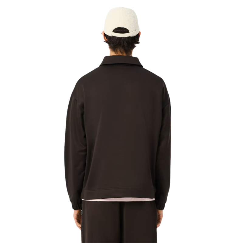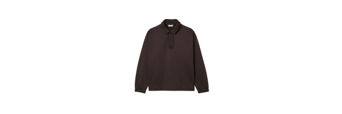 LACOSTESweat-shirt molletonné ample col polo nylon coton marron chocolat