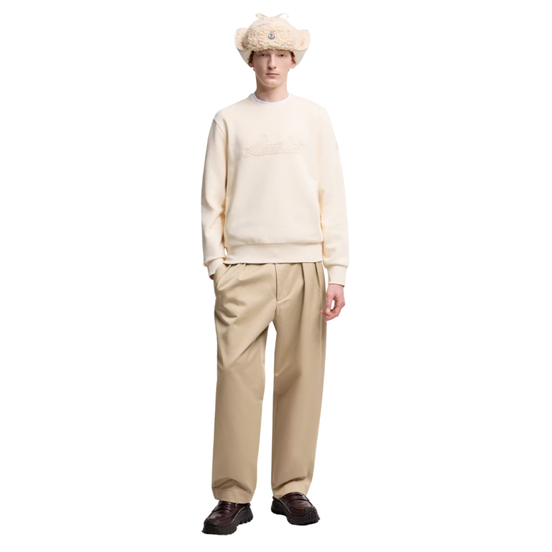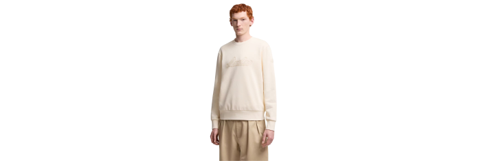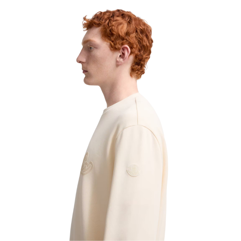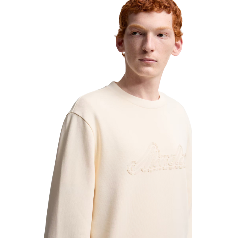 MONCLERSweat-shirt col rond coton écru broderie logo écriture