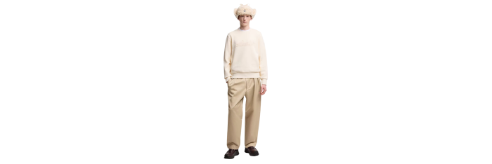 Sweat-shirt col rond coton écru broderie logo écriture