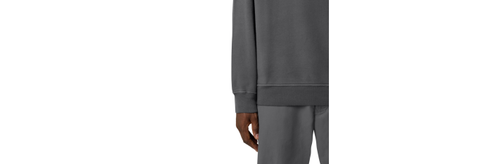 Sweat-shirt ras-du-cou en 95 % coton biologique et 5 % molleton d’élasthanne. Modèle teint en pièce.