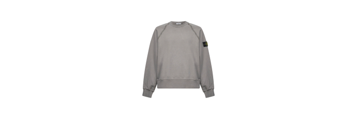 Encolure côtelée. Manches raglan oversize avec coutures surjetées et bords effilochés. Badge Stone Island sur la manche gauche. Poignets et bord inférieur côtelés et élastiqués. Coupe oversize.