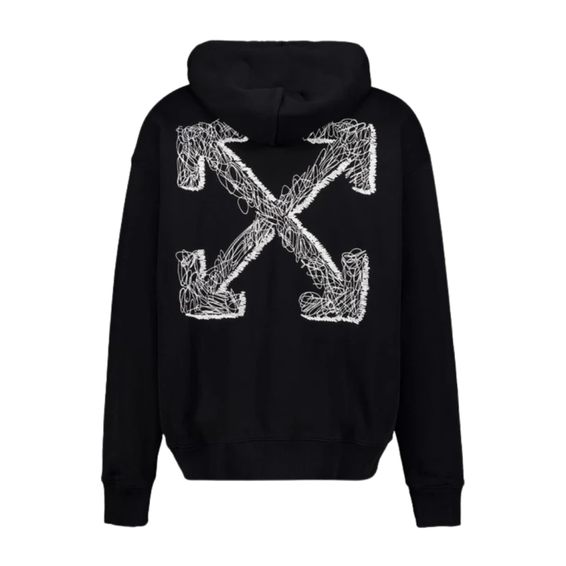 OFF WHITESweat-shirt à capuche coton noir Scribble Arrow blanc