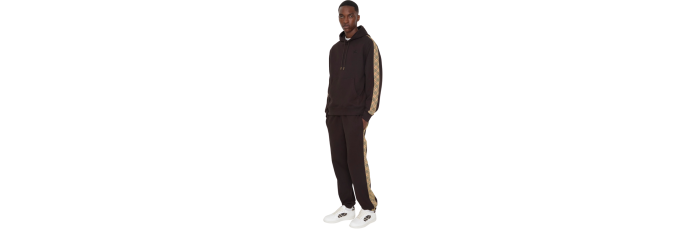 Sweat-shirt à capuche hoodie slim Simon coton noir bande check beige