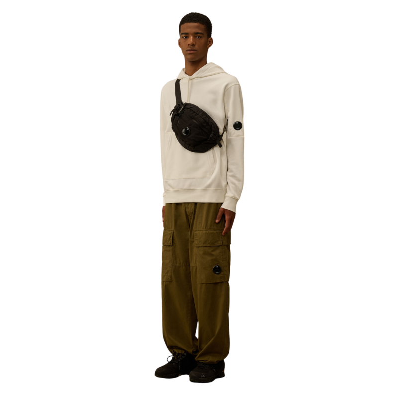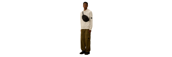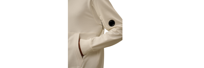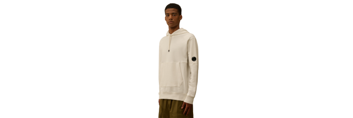 Sweat à capuche confectionné en polaire à relief diagonal, un coton brossé à tissage diagonal de poids moyen. Le tissu doux assure le confort et la facilité de mouvement. Ce sweat-shirt est doté d'une capuche réglable, d'une poche kangourou et de la lentille emblématique de C.P. Company. Finition avec poignets et ourlets côtelés. Coupe régulière.