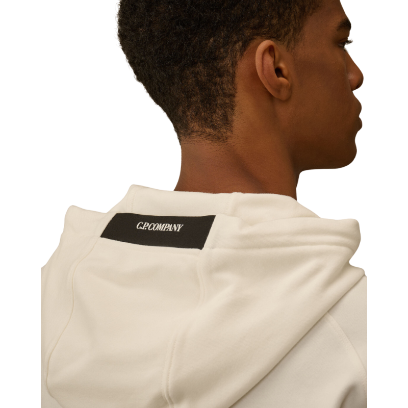 CP COMPANYSweat-shirt à capuche polaire coton relief diagonal blanc