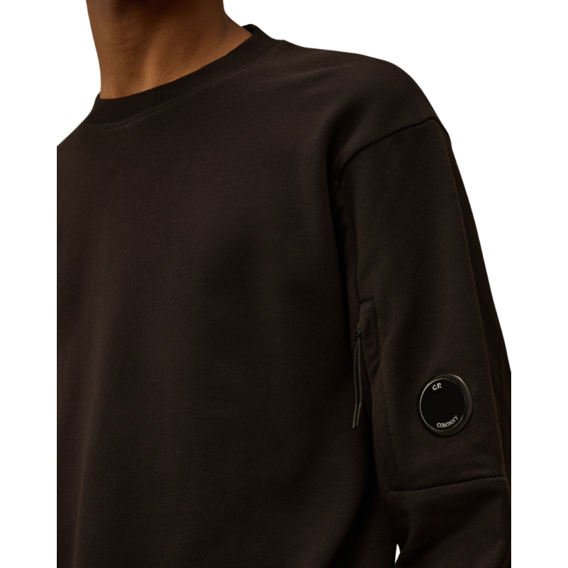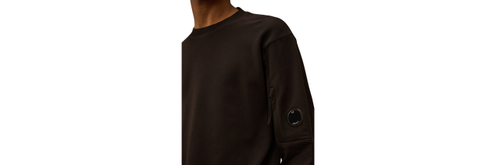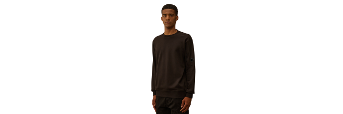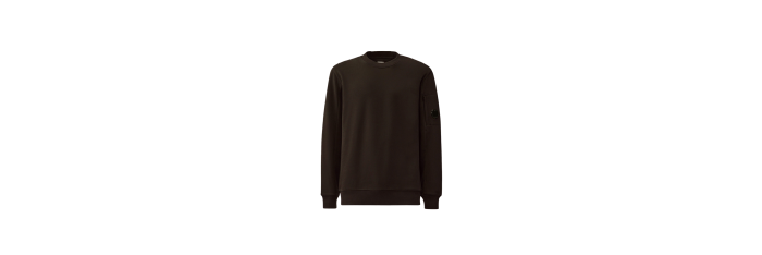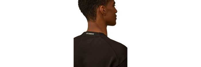 Sweat rasé du cou confectionné en polaire à relief diagonal, un coton brossé à tissage diagonal de poids moyen. Le tissu doux assure le confort et la facilité de mouvement. Le sweat-shirt est orné d'un logo brodé sur le col arrière, de la lentille emblématique de C.P. Company, et de poignets et d'un ourlet côtelés. Coupe régulière.