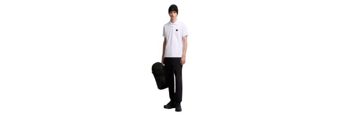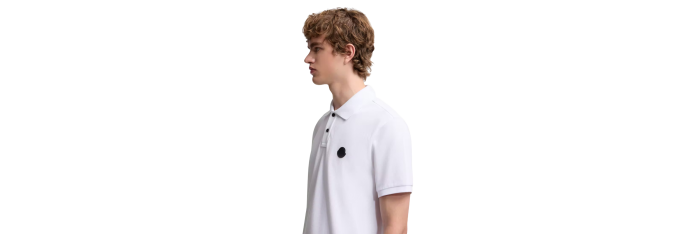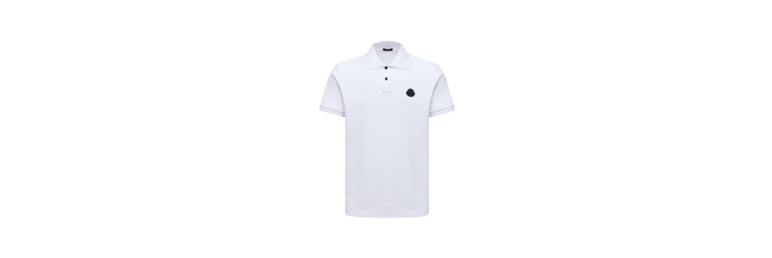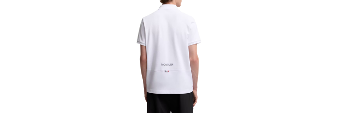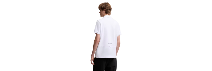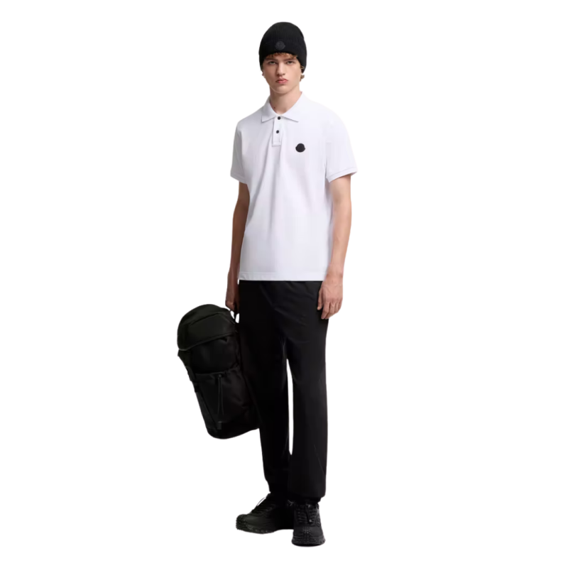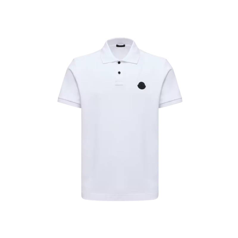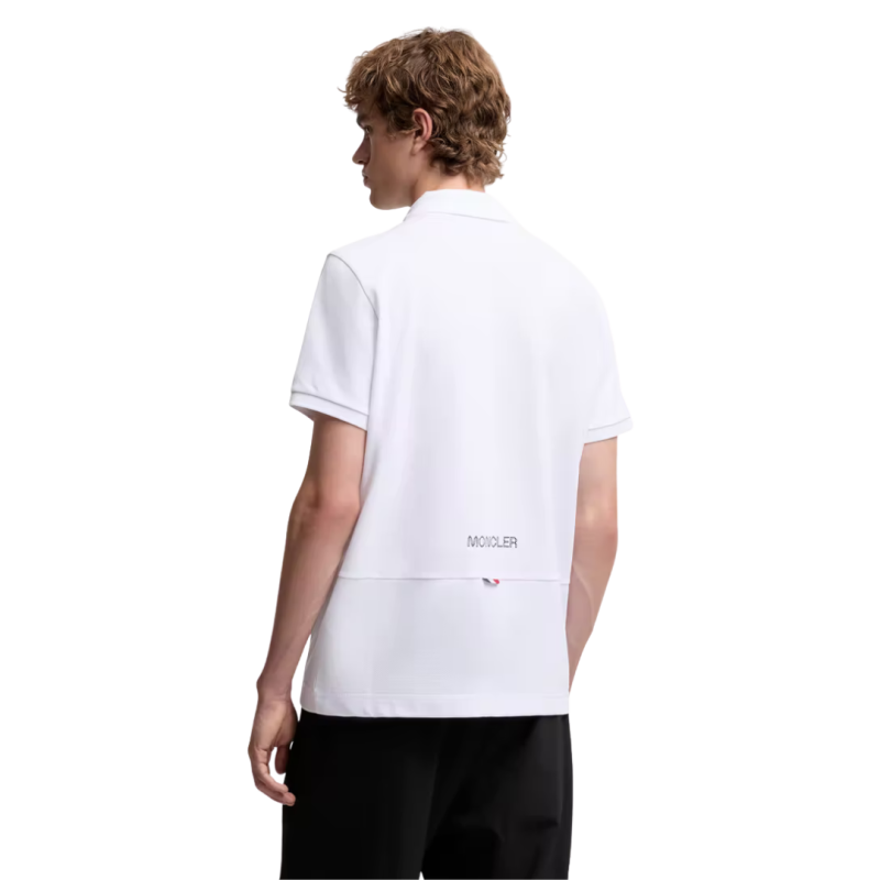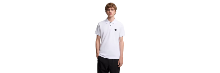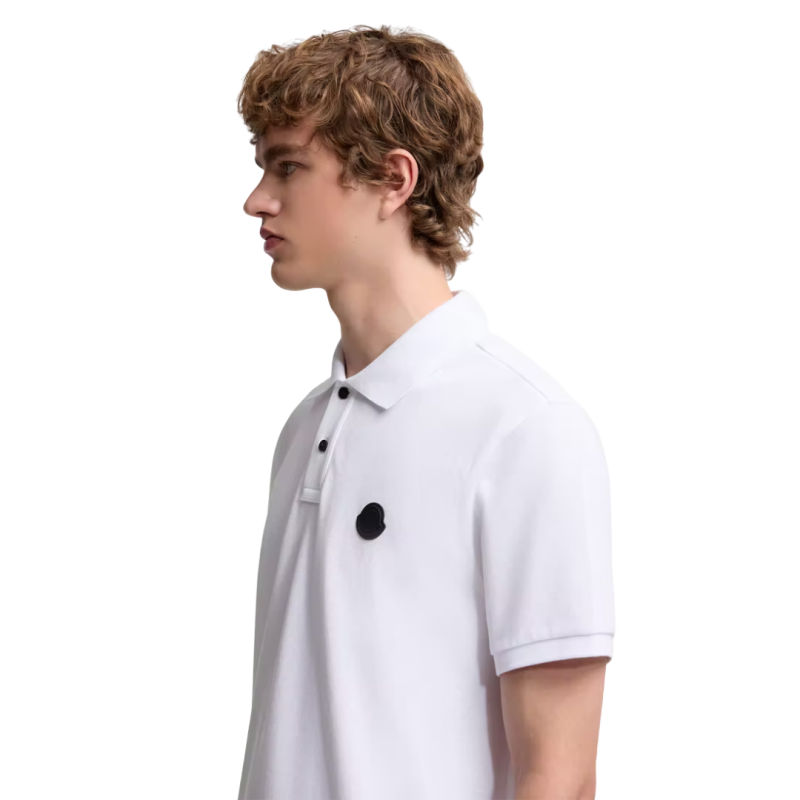 Polo manche courte coton piqué blanc logo gomme noir écriture dos