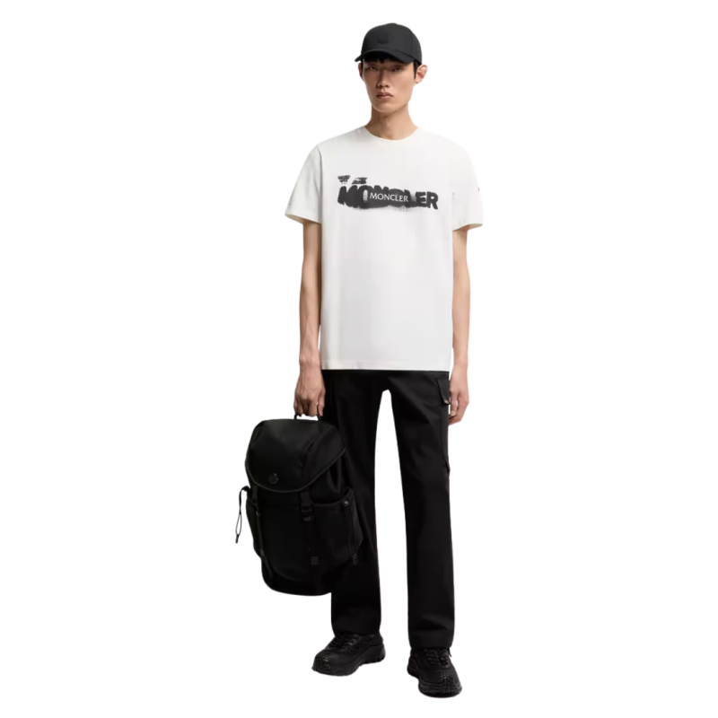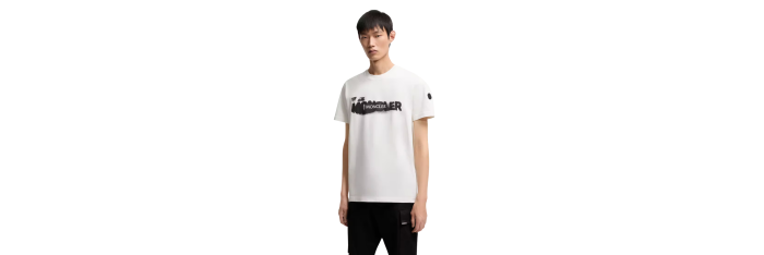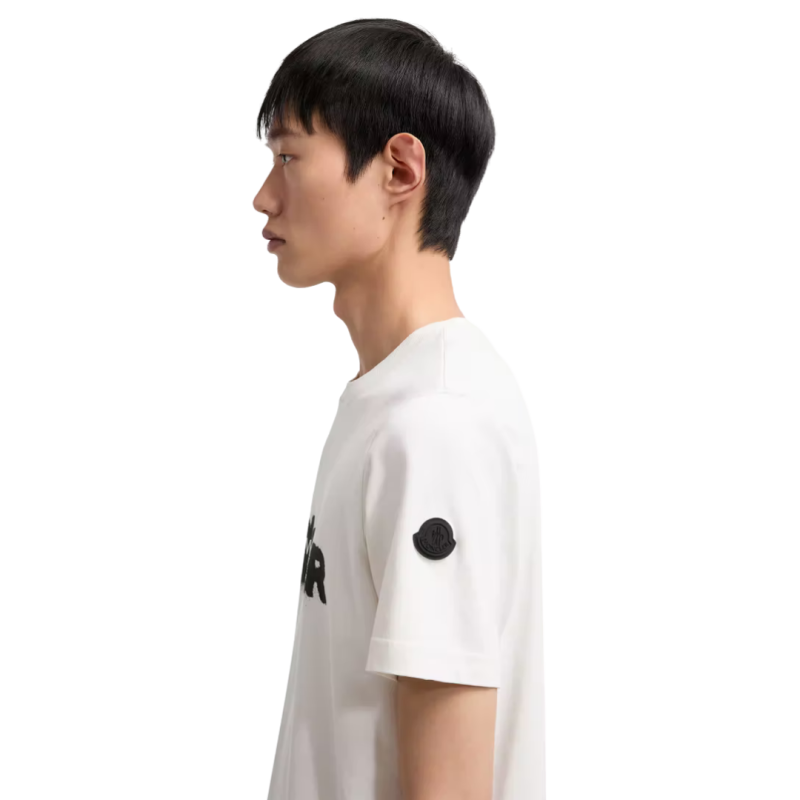 MONCLERT-shirt col rond coton blanc logo graphique noir