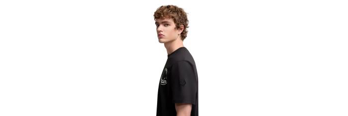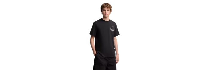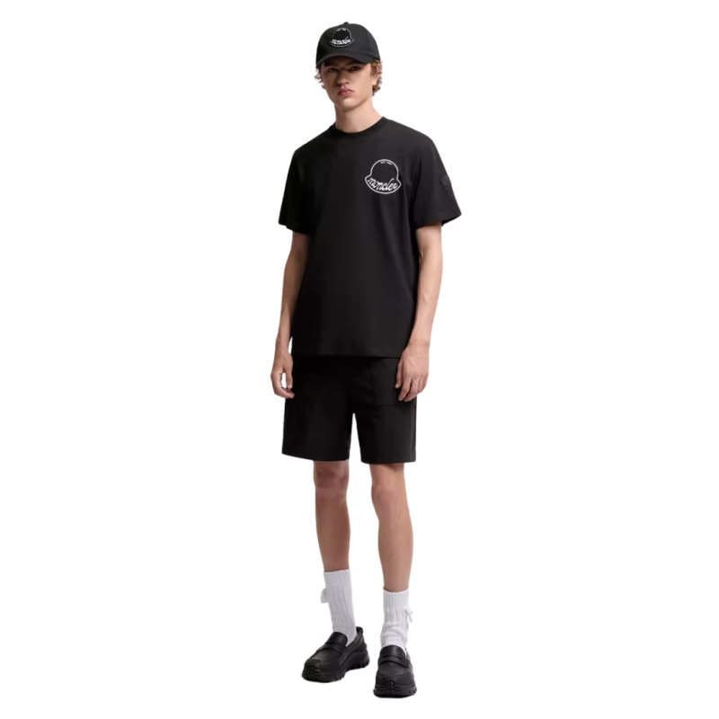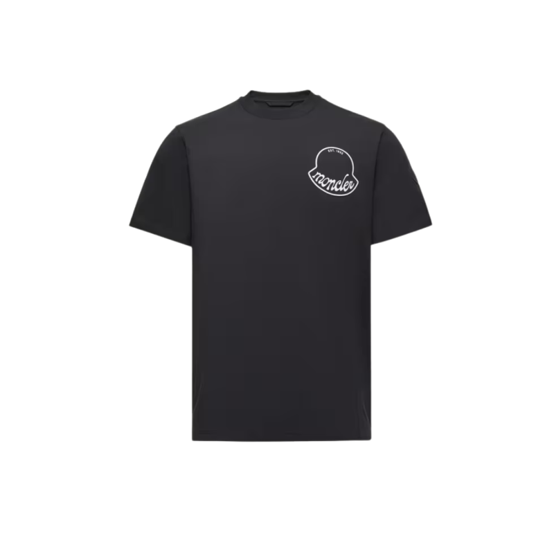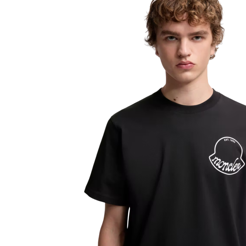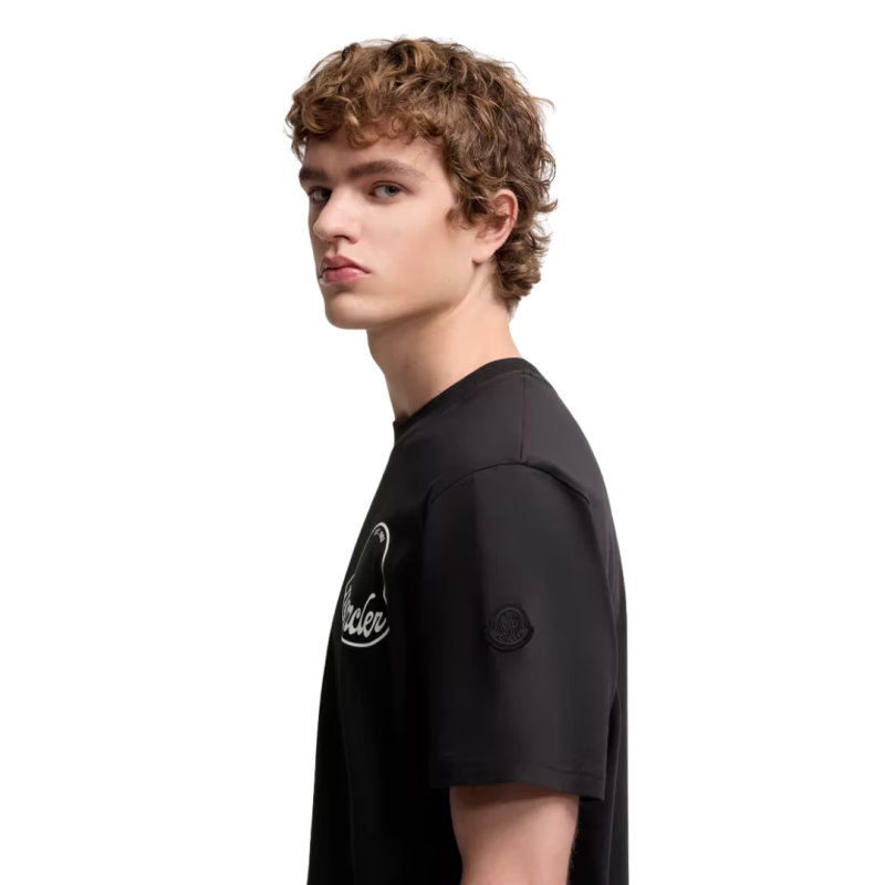 MONCLERT-shirt col rond coton noir gros logo écriture blanc
