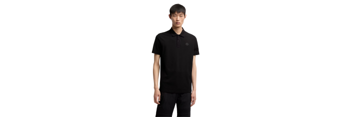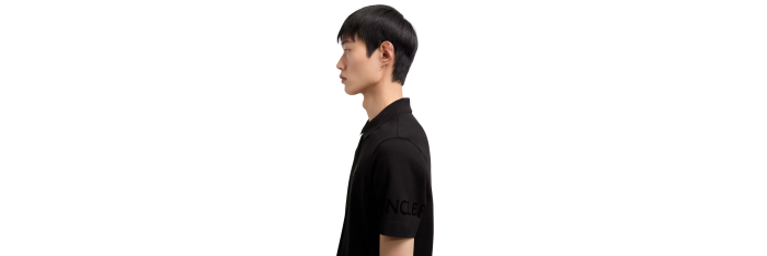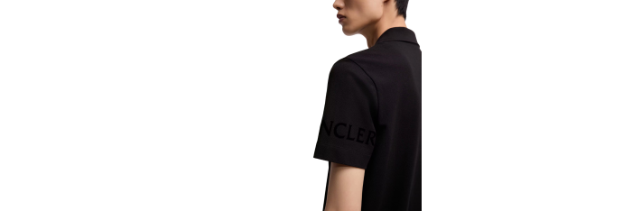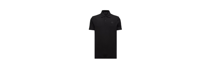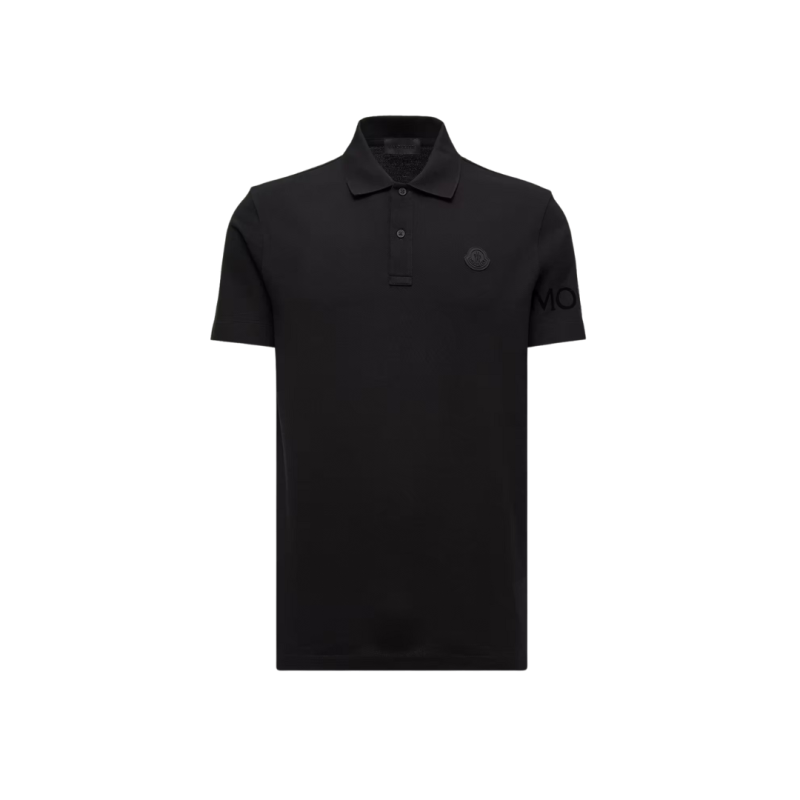 MONCLERPolo manche courte coton piqué noir logo gomme noir écriture dos