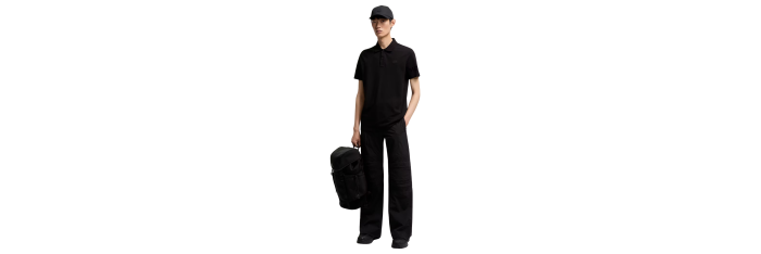 Polo manche courte coton piqué noir logo gomme noir écriture dos
