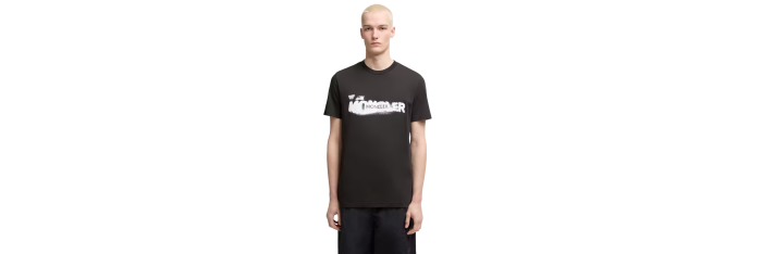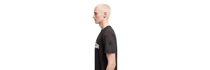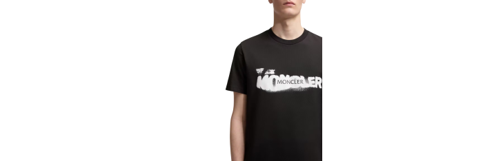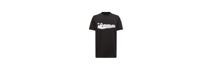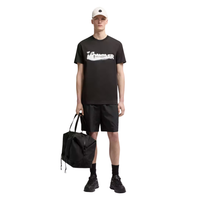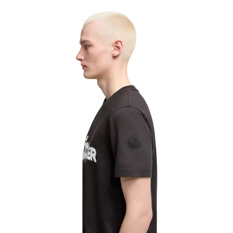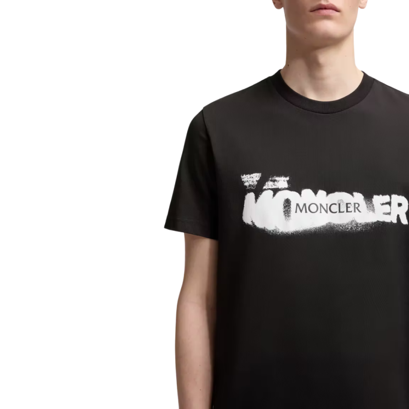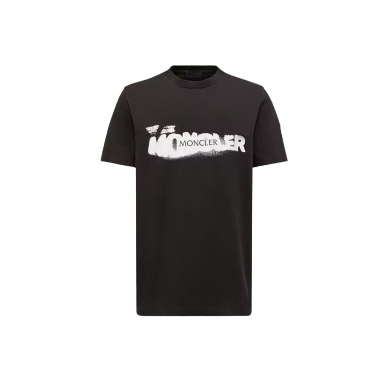 MONCLERT-shirt col rond coton noir logo graphique blanc