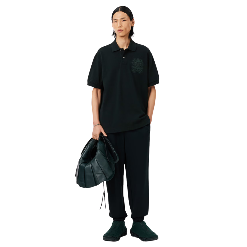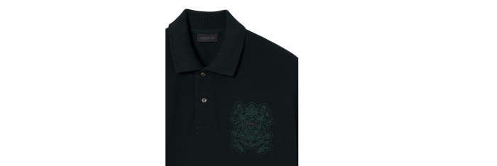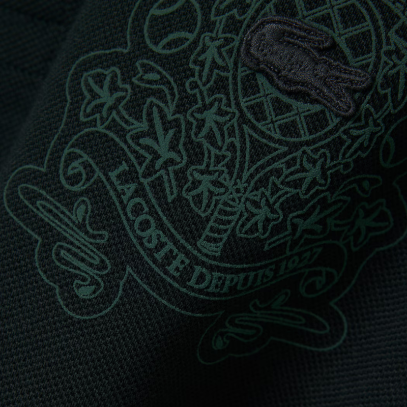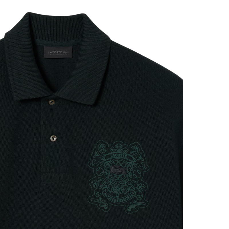 LACOSTEFashion Show Polo manche courte Défilé loose fit coton piqué vert foncé broderie blason