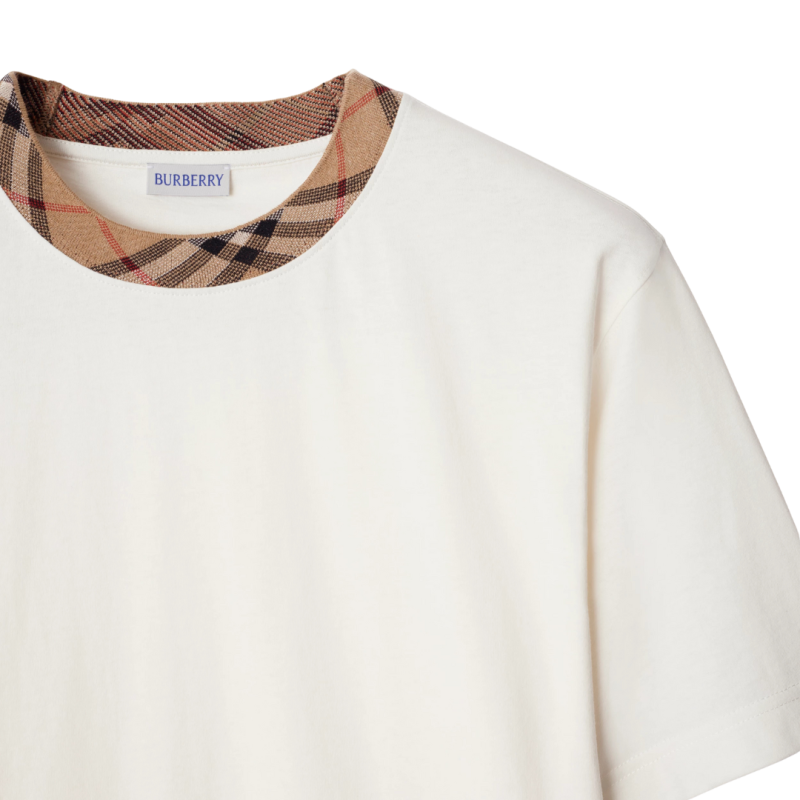 BURBERRYT-shirt Ryan coton jersey écru col Check beige