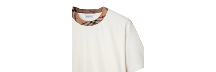 Ce t-shirt ras du cou à la coupe droite est confectionné en jersey de coton. La pièce est ornée de détails à carreaux Burberry Check dans notre teinte sable emblématique.