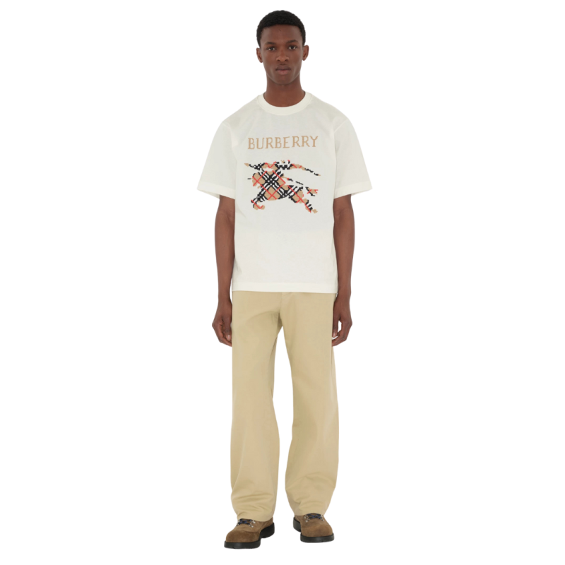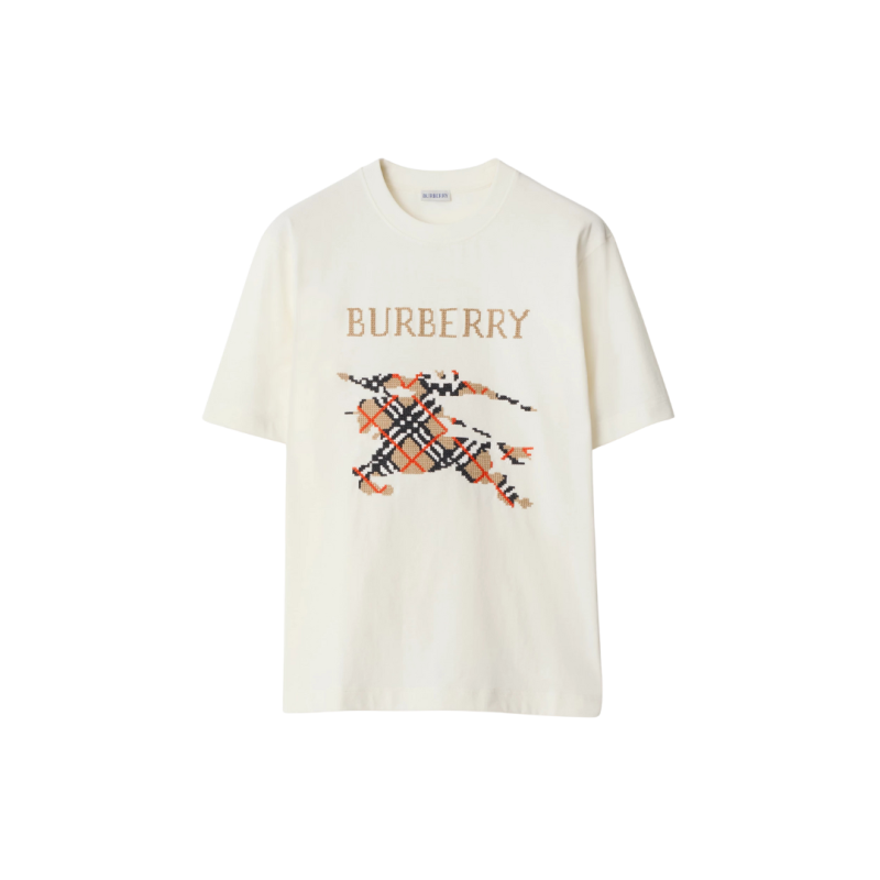 Ce t-shirt à col ras du cou est confectionné en jersey de coton. La pièce casual est sublimée par des broderies croisées représentant notre logo et l'emblème Equestrian Knight Design à carreaux Burberry Check.