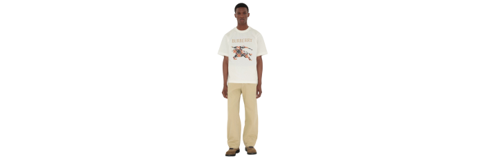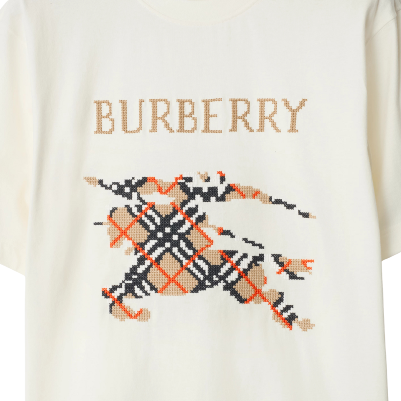 BURBERRYT-shirt Ryan coton écru crochet EDK cavalier Check beige