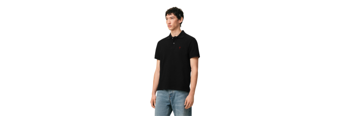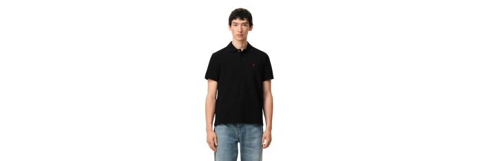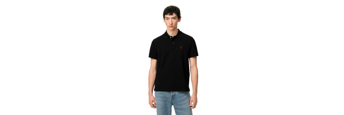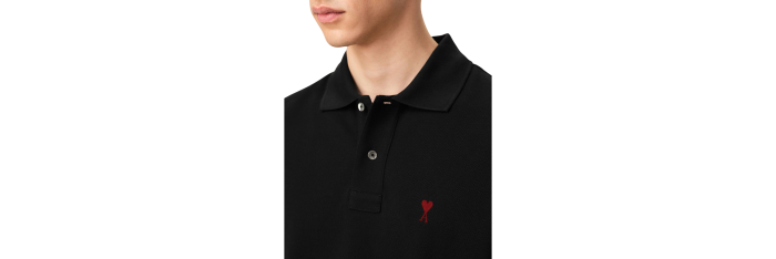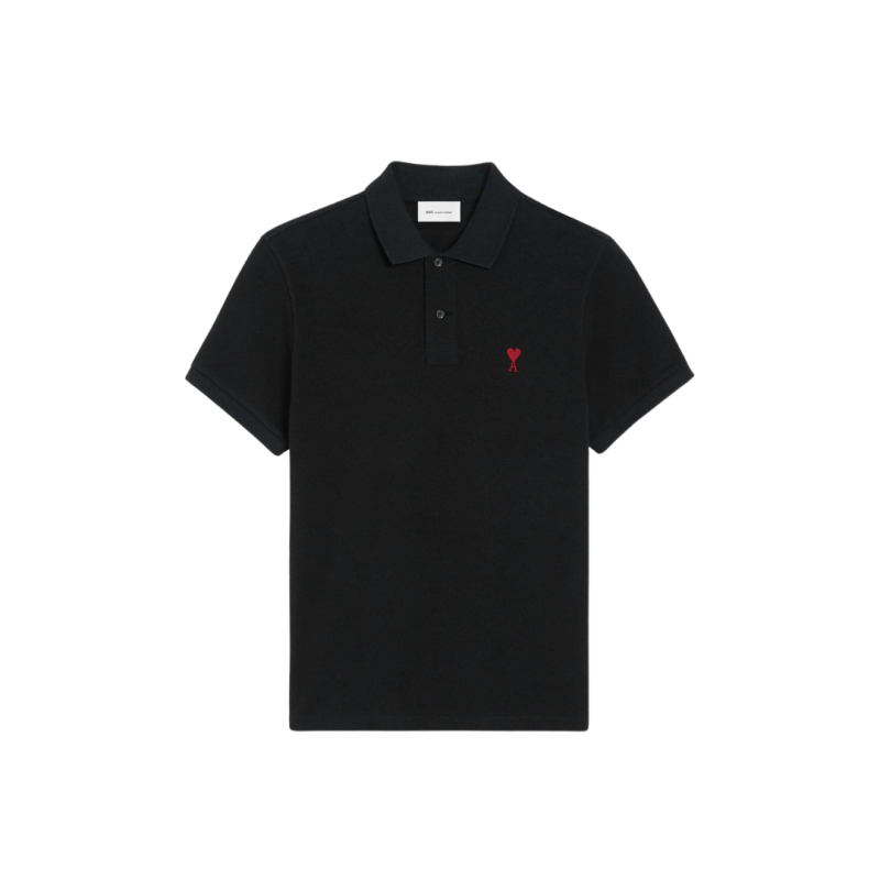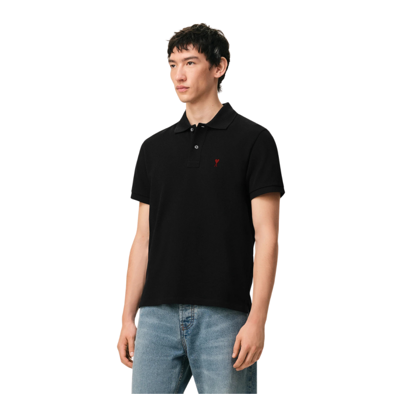 AMI ParisPolo Ami de Cœur piqué coton bio noir cœur rouge