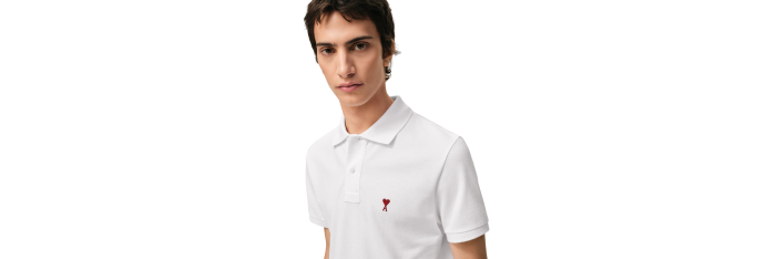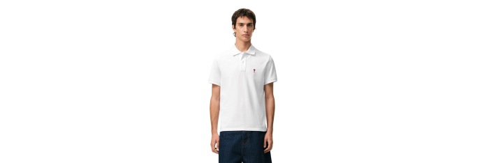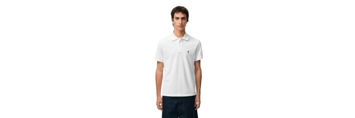 AMI ParisPolo Ami de Cœur piqué coton bio blanc cœur rouge