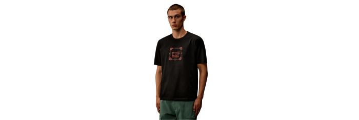 CP COMPANYT-shirt col rond manche courte jersey coton noir logo carré Metropolis Collection