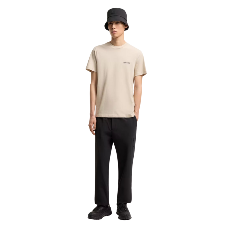 MONCLERT-shirt en jersey de coton beige à logo imprimé patch noir mat