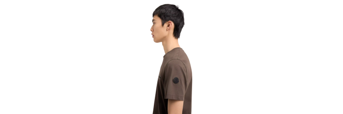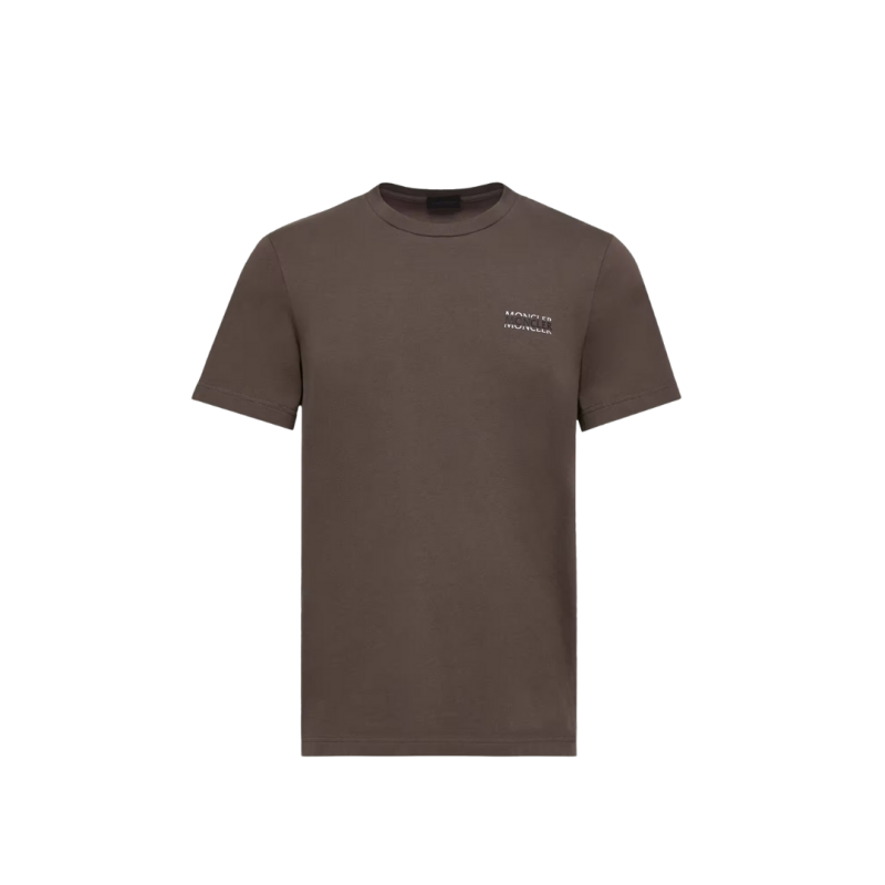MONCLERT-shirt en jersey de coton marron chocolat à logo imprimé patch noir mat