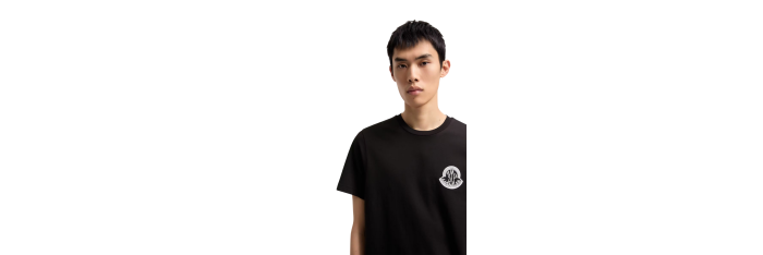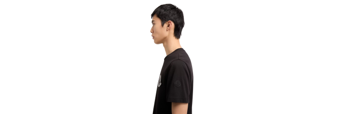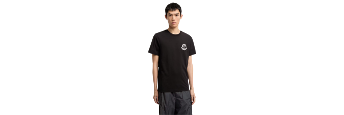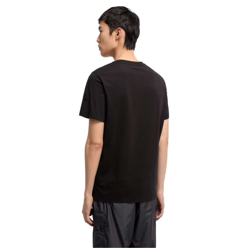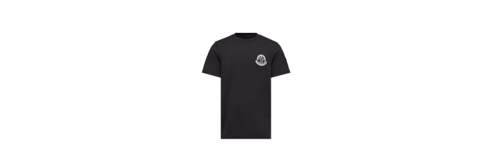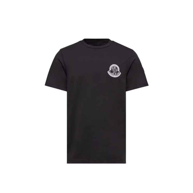 MONCLERT-shirt en jersey de coton noir à logo relief blanc patch noir mat