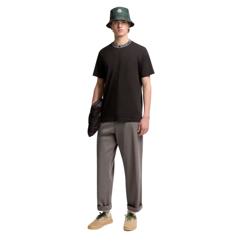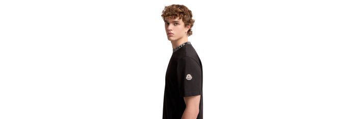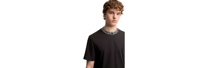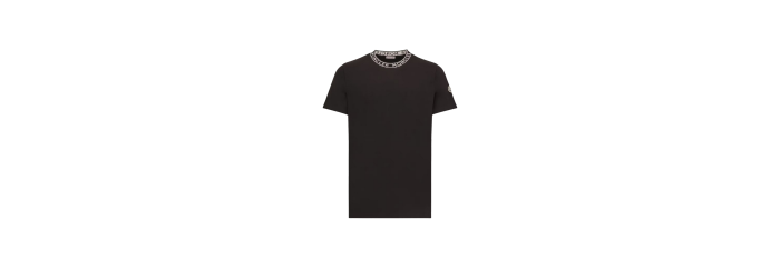 T-shirt coton noir à finitions logo Moncler blanc col