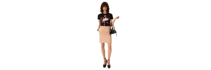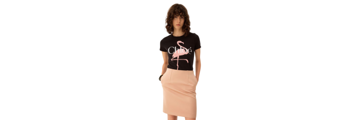 CHLOET-shirt col rond ajusté jersey coton bio noir flamants roses