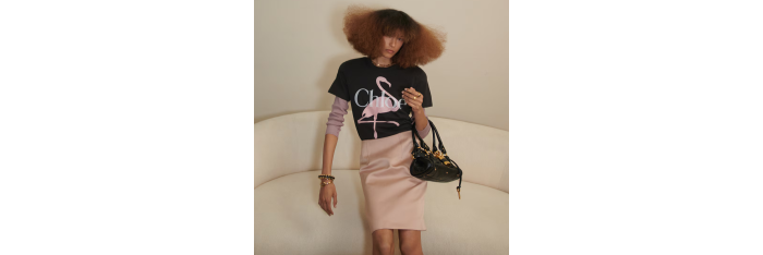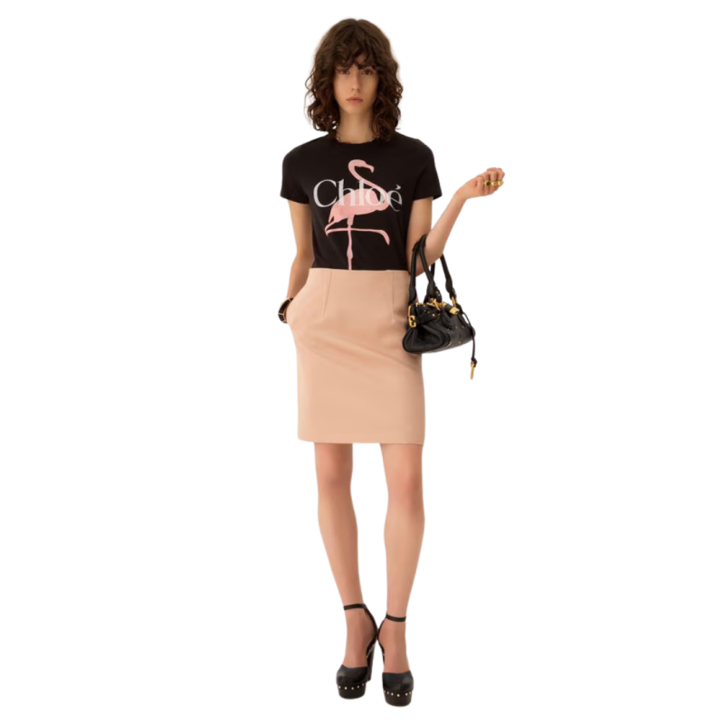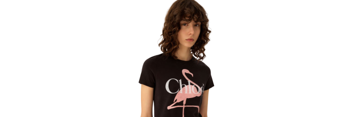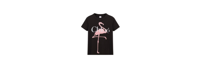 T-shirt col rond ajusté en jersey de coton biologique à imprimé flamant rose et logo Chloé.