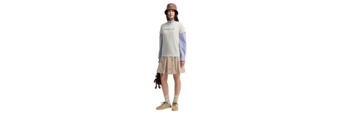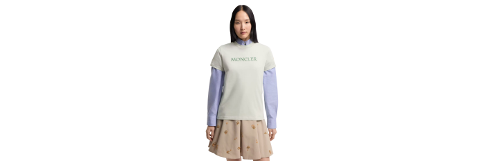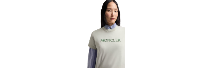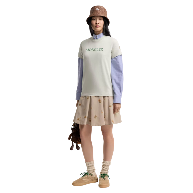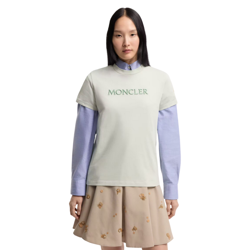 MONCLERT-shirt col rond coton vert d'eau broderie logo écriture ton sur ton