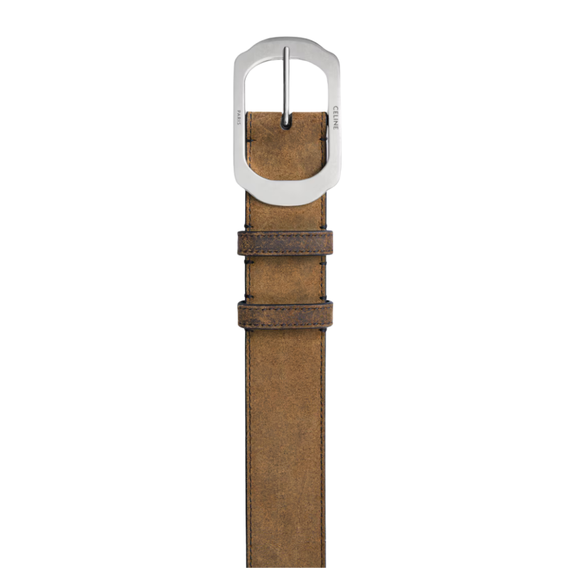CELINEceinture cuir veau suédé à effet ciré marron boucle argenté