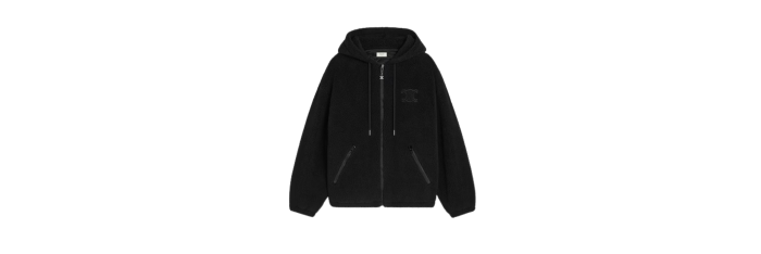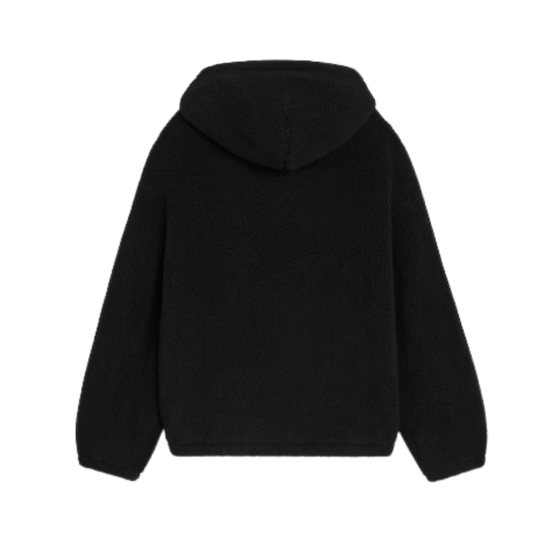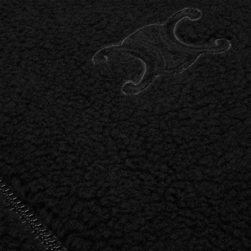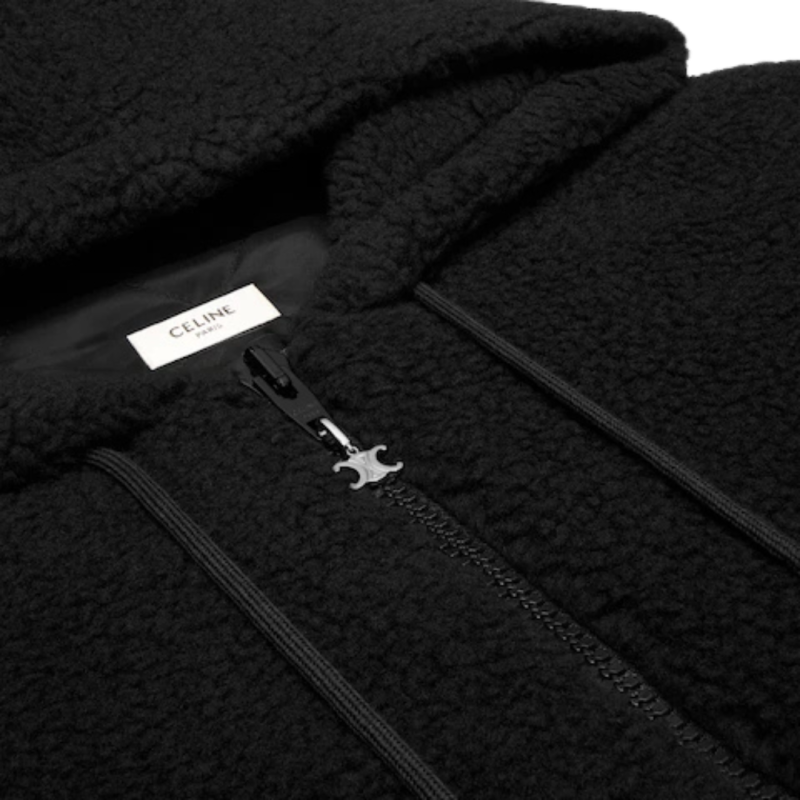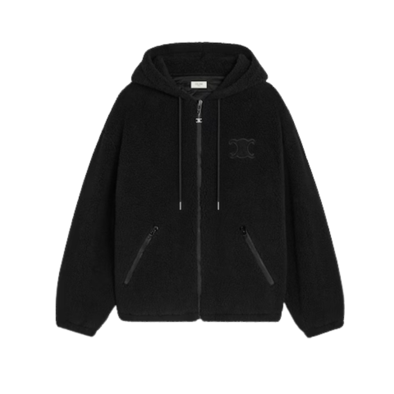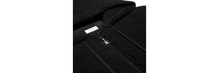 Blouson capuche zippé laine mouton coton polaire noir logo Triomphe