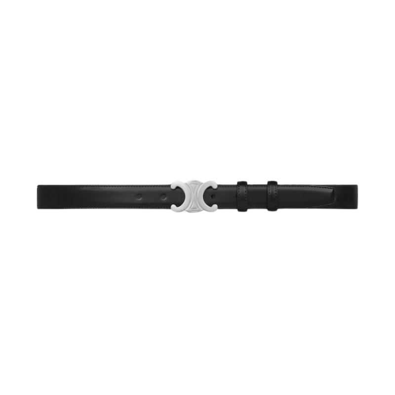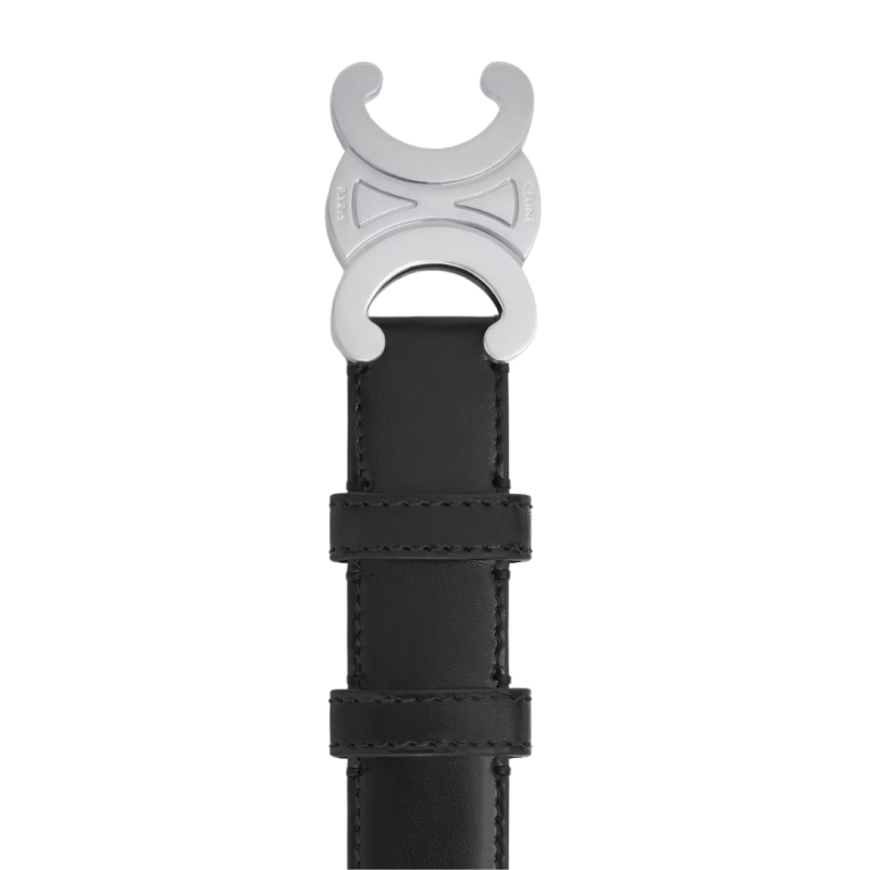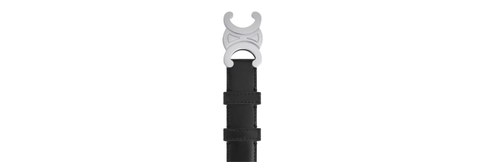 CELINECeinture Triomphe cuir taurillon noir boucle argent